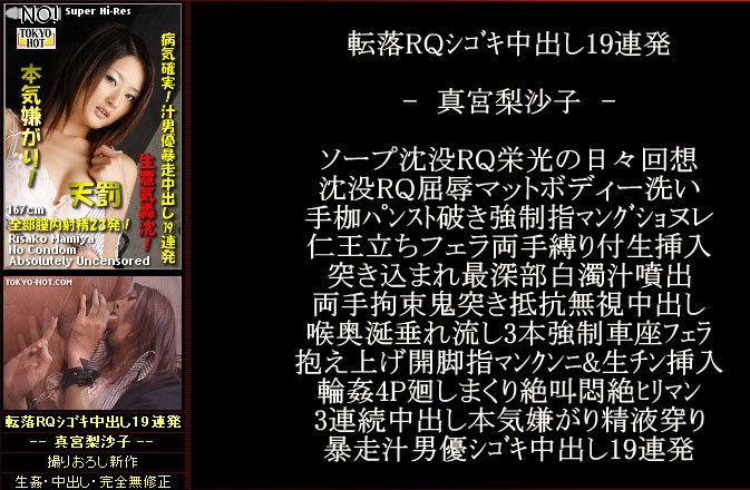 女が風俗で働く理由は概ねお金です。SMクラブ等一部のマニアックな風俗では趣味嗜好の延長という理由もありますが興味本位で風俗の世界に飛び込んでも一般的に長続きは困難。大金を貯める目的で働く風俗嬢がいる一方売り飛ばされてきた女もいます。ソープ嬢・真宮梨沙子は長身でスタイル抜群の美脚美人。風俗嬢にしておくには勿体無い極上の女です。そんな女がどうしてソープで働いているのか。